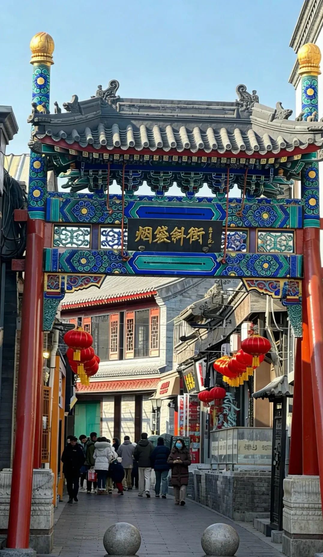 2. 烟袋斜街:曲坎坷折的老街,两旁是手作小店、文创铺,老北京糖葫芦、驴打滚遍地可见,尽头等于银锭桥。
