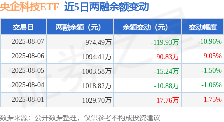 本站音讯,8月7日,央企科技ETF(560170)融资买入37.67万元,融资偿还157.6万元,融资净卖出119.93万元,融资余额974.49万元。