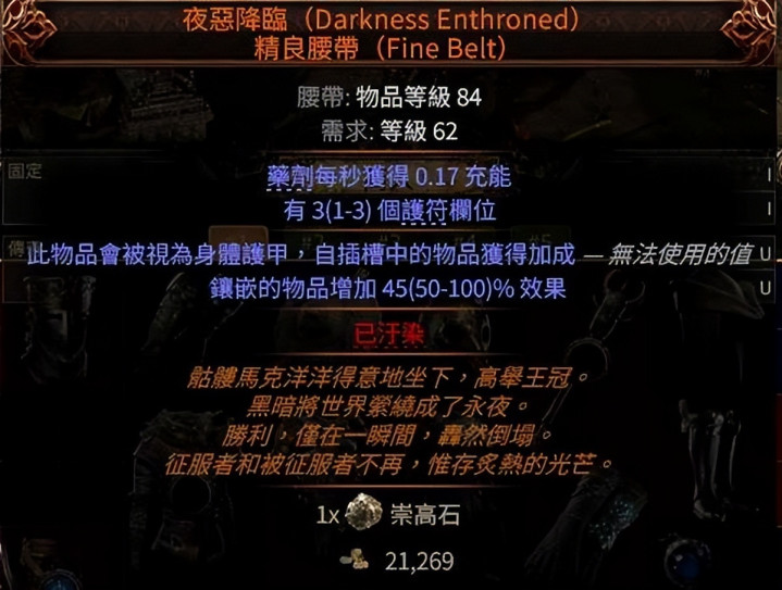 装备方面14级前用凋零法杖拿拖拉箭,14级之后的装备要记取装备的后词缀属性耐久优先于装备的基底属性,具体发扬为扫数法术品级>法术伤害升迁>法术物理伤害升迁>施法速率。到了异界中期攒到通货就不错用高法伤基础底细的杖嘞法器加上完好魔法精华不错点出双+3(法术品级)简略+5和高法伤的火器,后期电球成型之后装备优先登科+5闪电手段法杖,前缀不错拿一些gain和法伤,后缀优先拿施法速率,暴击伤害为次优先级,副手法球禁受暗金的献祭之心,通过最大生命交流极高的暴击率和法伤inc