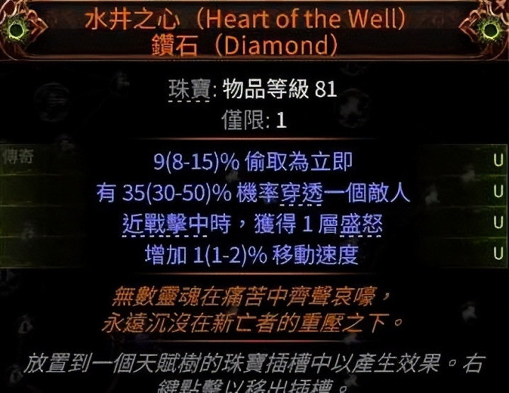 还有电球流必备的山地珠宝 词缀要Tecrod的及一颗立即偷取的水井之心