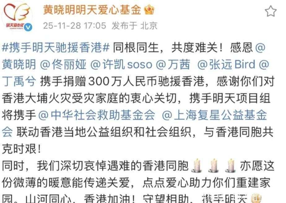 到了12月28号,郑秀文偷偷通过助手捐了一百万港币,没发声明也没晒图,这件事一直没东谈主知谈,自后到2025年11月底和12月初,网上开动刷屏明星捐钱的音书,韩红捐了一千万,黄晓明凑了三百万,江若琳老婆彻夜作念饭送饭,翁嘉穗径直送了床褥,公共看多了这些看得见的维护,再回头看郑秀文之前转发、祷告、写心愿这些行动,就合计她光说不作念,于是王人纠合吐槽她只祷告不捐钱。