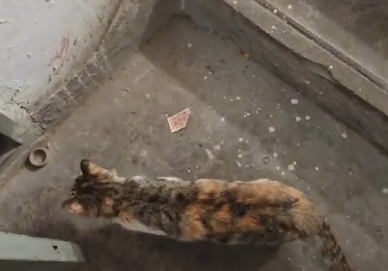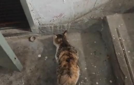 开门的东说念主看了看猫,赶忙握一把猫粮放在了地上,流浪猫折腰就开吃。