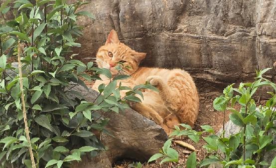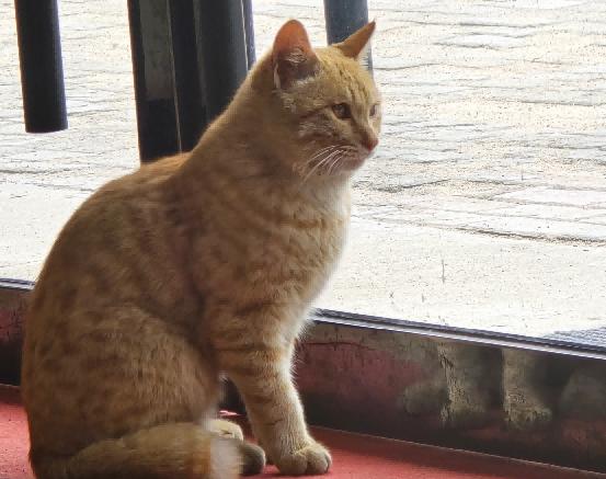 上个月,在店铺外面的垃圾桶旁,碰到一只流浪的大橘,看起来很乖巧。