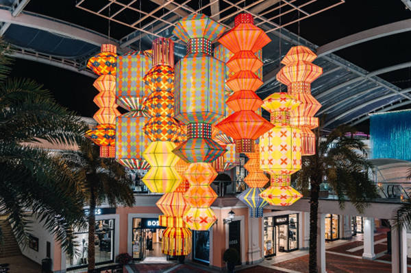 几何吉灯·流光映祥大型灯笼安装。重庆佛罗伦萨小镇供图